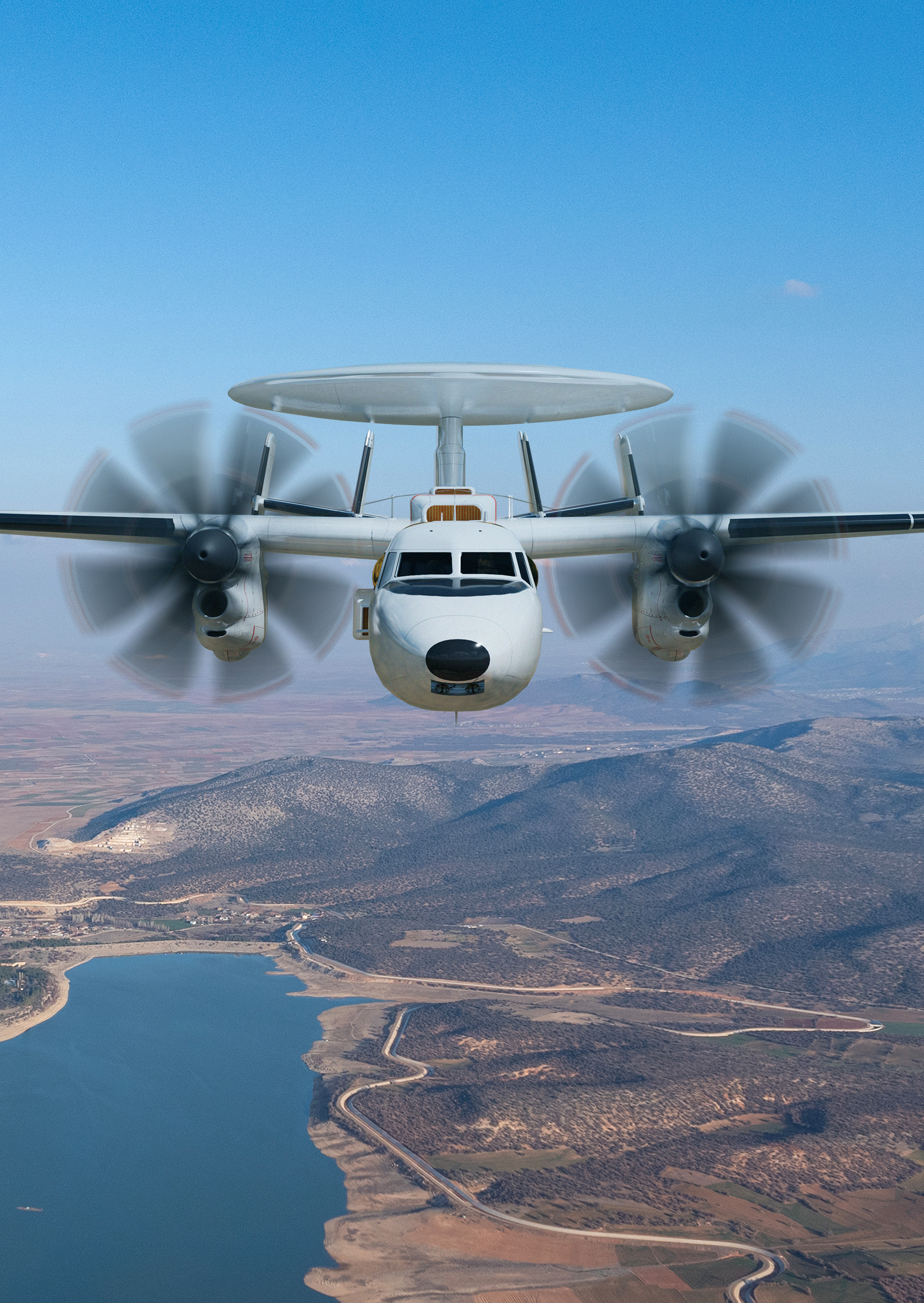 Based on a platform that has delivered six decades of airborne early warning, E-2D enhances air and missile defense system capabilities. It is a modern airborne command and control aircraft capable of providing a 360-degree surveillance picture of all targets in its area of regard over water or land.